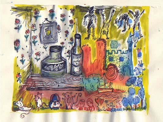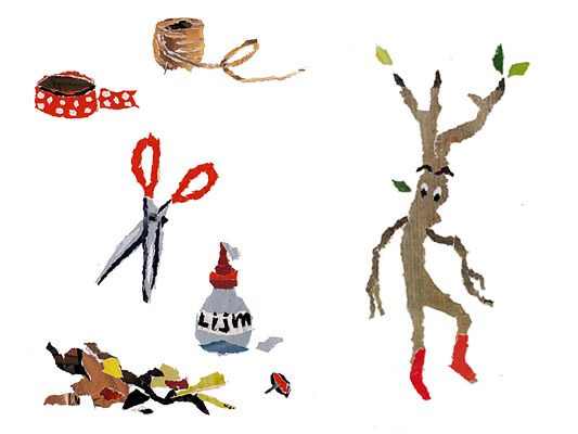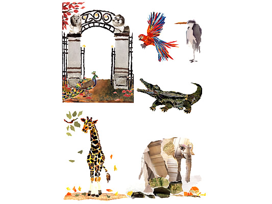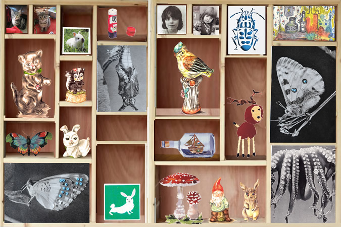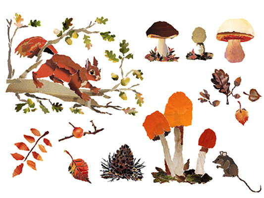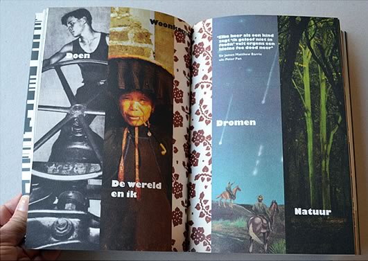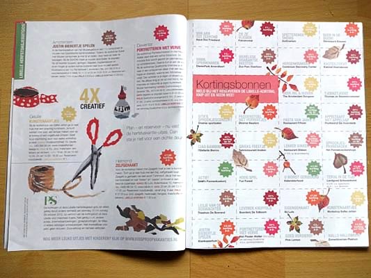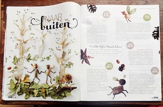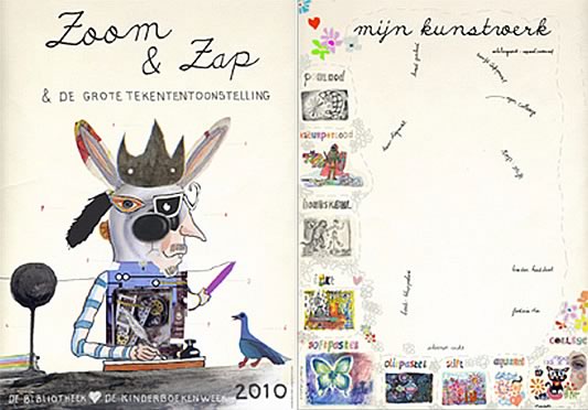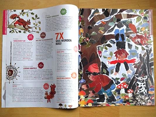 illustraties bijlage 'herfstdagjesuit-gids'<BR>Libelle nr 41 | okt. 2013 Boekje met slinger | opdrachtgever ProBiblio<BR>i.s.m. Rixt Hilverda | oplage 500 illustratie voor filmpje ProBiblio<BR>collage bewerkt in Photoshop selectie uit serie<BR>collage